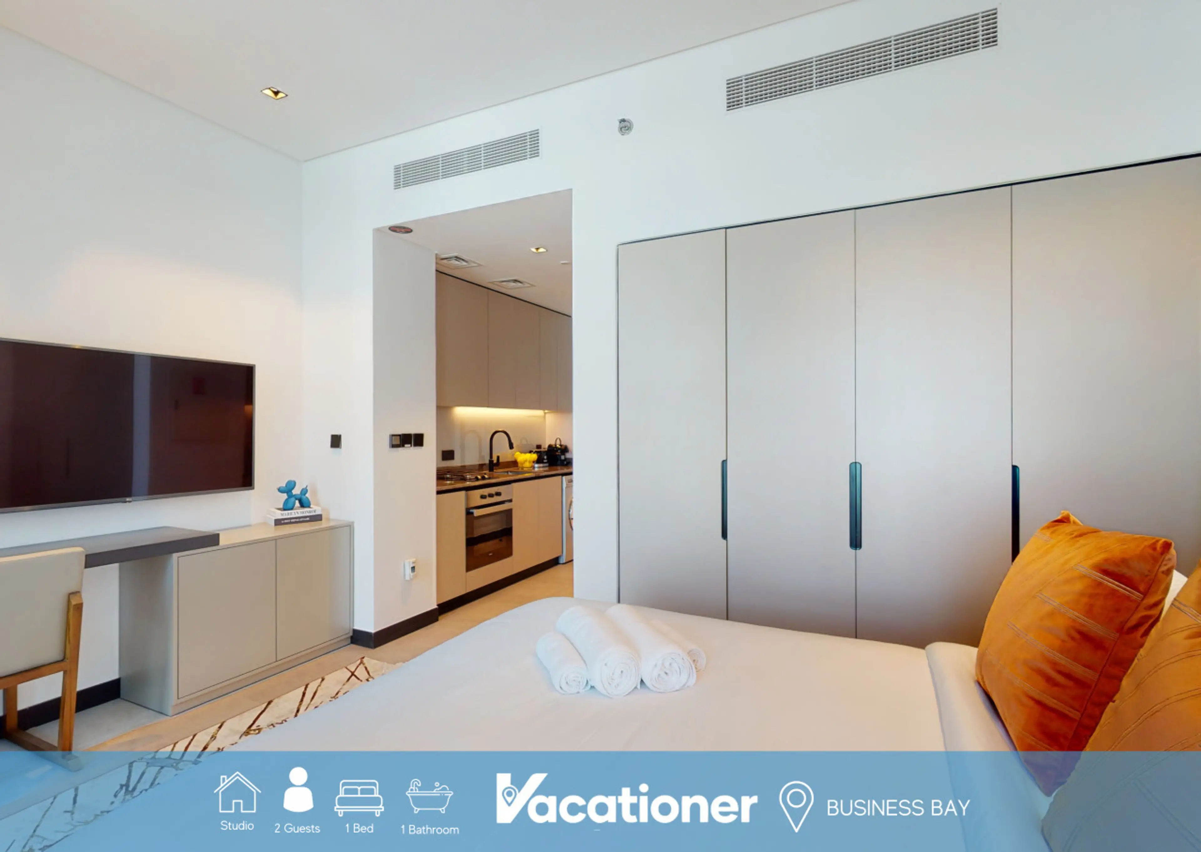 This modern studio apartment provides the perfect choice for a couple or single traveller looking for for a memorable getaway. Located in the bustling district of Business Bay, it is just minutes from all the sights of Downtown Dubai. The area is also close to Dubai Design District and one of the ci...