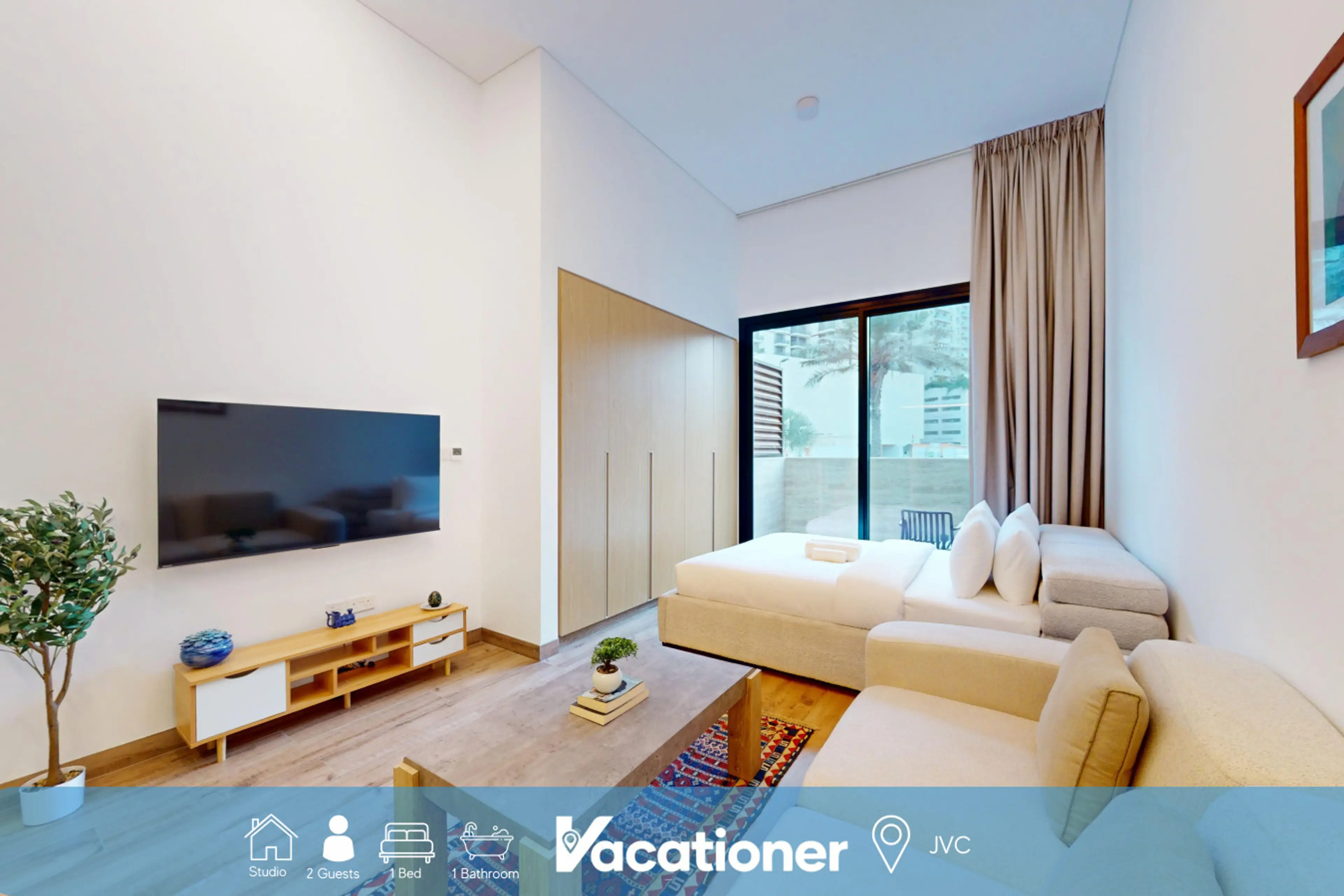 Relax in this bright and modern studio, perfectly situated in the heart of JVC. Featuring contemporary furnishings and a calm, welcoming atmosphere, it offers everything you need for a comfortable and enjoyable stay. The neighbourhood is full of nearby restaurants, a shopping mall and parks all with...