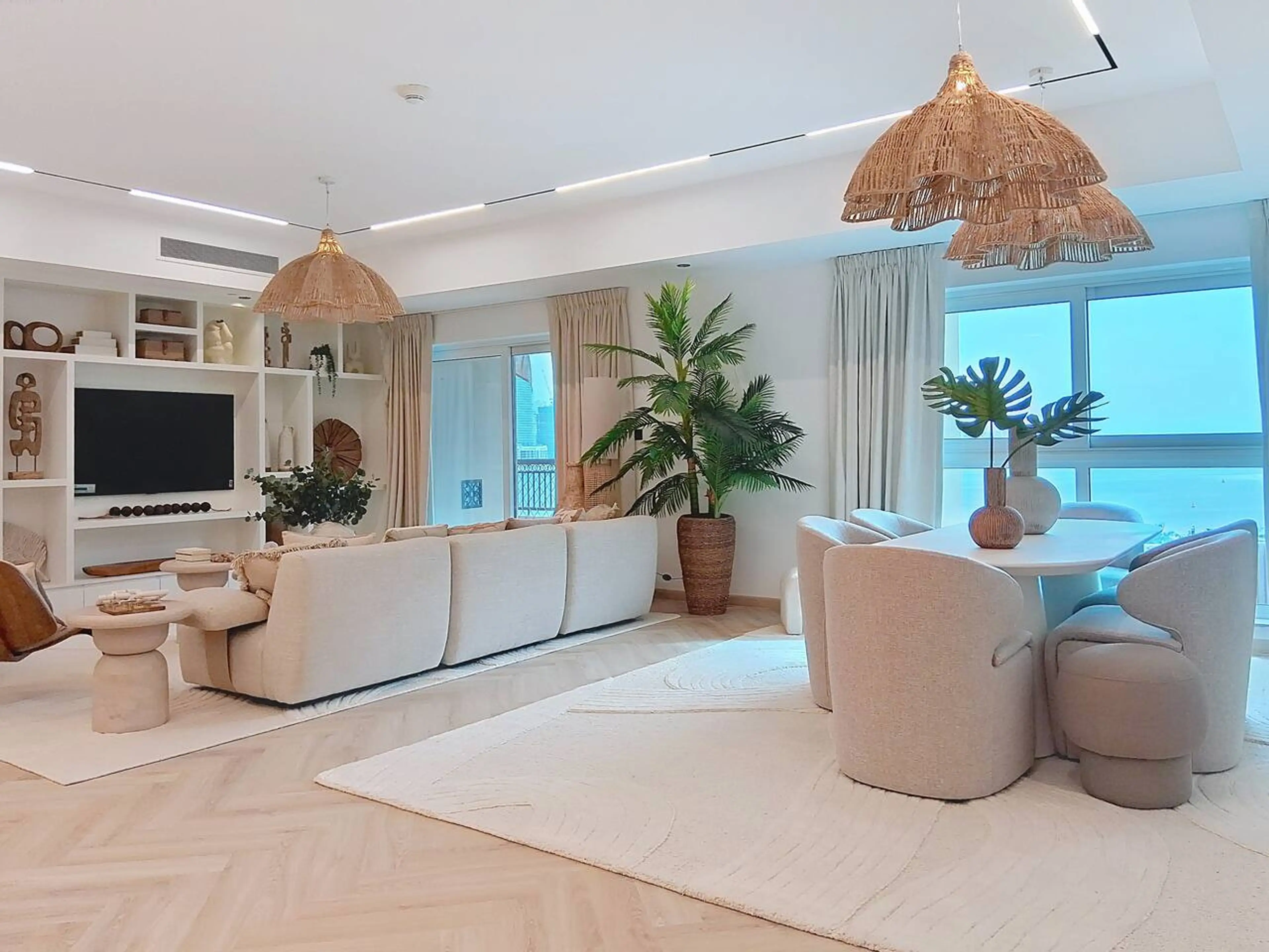 This exquisite four-bedroom on the iconic Palm Jumeirah invites you into an unparalleled lifestyle. A true coastal retreat and calming oasis, creating the feeling of a private sanctuary. Wake up to serene views of the Arabian Sea from your private balcony, where the gentle coastal breeze and endless...